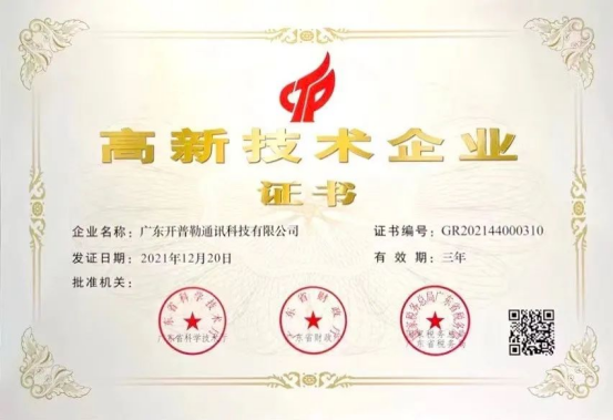 近日,由電建集團持股的廣東開普勒通訊科技有限公司順利通過2021年廣東省高新技術企業(yè)認定,這是開普勒首次通過此認定項目。2021年,開普勒憑借出色的自主創(chuàng)新能力,高效保質(zhì)地完成了首次高新企業(yè)認定工作。