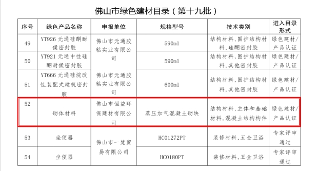 佛山綠色建材目錄-第52項(xiàng) 恒益環(huán)保建材公司蒸壓加氣混凝土砌塊