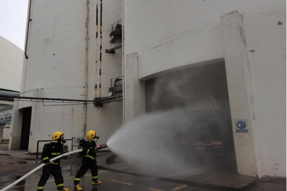 演練現(xiàn)場(chǎng)-電廠消防隊(duì)進(jìn)行噴水降塵