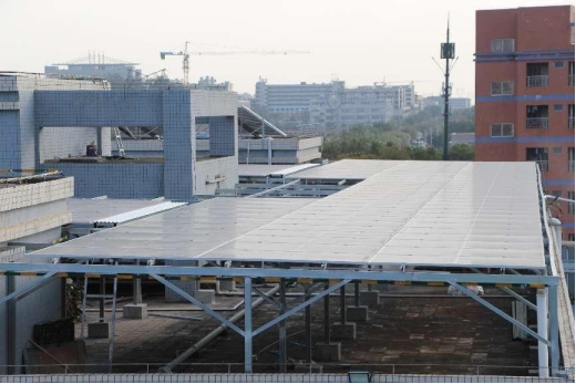 項(xiàng)目利用企業(yè)廠房閑置屋頂,通過鍍鋅鋼搭棚方式在水泥屋面上安裝光伏電站。在項(xiàng)目建設(shè)過程中,我們對(duì)屋面進(jìn)行結(jié)構(gòu)加固,對(duì)屋面防水層進(jìn)行有效保護(hù)和修復(fù)。此外,光伏電站還降低屋面溫度,大大降低了廠房空調(diào)能耗。
