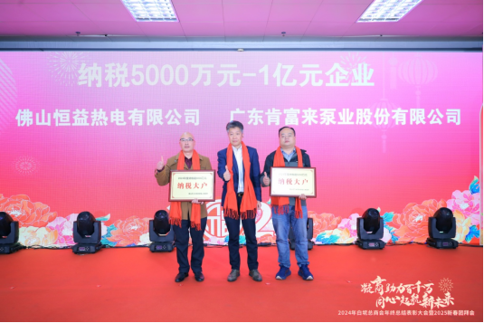 1月15日,2024年度白坭總商會年終總結(jié)表彰大會在白坭鎮(zhèn)政府大禮堂隆重召開,佛山恒益熱電有限公司(簡稱:恒益熱電公司)榮獲“2024年度超5000萬元納稅大戶”稱號,中國國際貿(mào)易促進委員會佛山市委員會黨組書記、會長李德,為恒益熱電公司代表頒發(fā)了榮譽牌匾,并合影留念,記錄了這榮耀時刻。