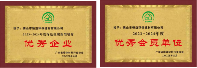 近日,佛山電建集團有限公司(簡稱:電建集團)下屬企業(yè)佛山市恒益環(huán)保建材有限公司(簡稱:恒益環(huán)保建材公司)在廣東省墻體材料行業(yè)協(xié)會2023-2024年度評選中榮獲“綠色低碳新型墻材優(yōu)秀企業(yè)”“優(yōu)秀會員單位”兩項榮譽稱號,同時,公司員工邵東鑫獲評“廣東省墻體材料行業(yè)協(xié)會先進工作者”。